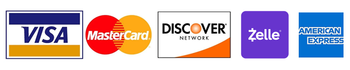 For payment we accept Cash, Check, Visa, Master Card, Discover Card, American Express Cards& Zelle.